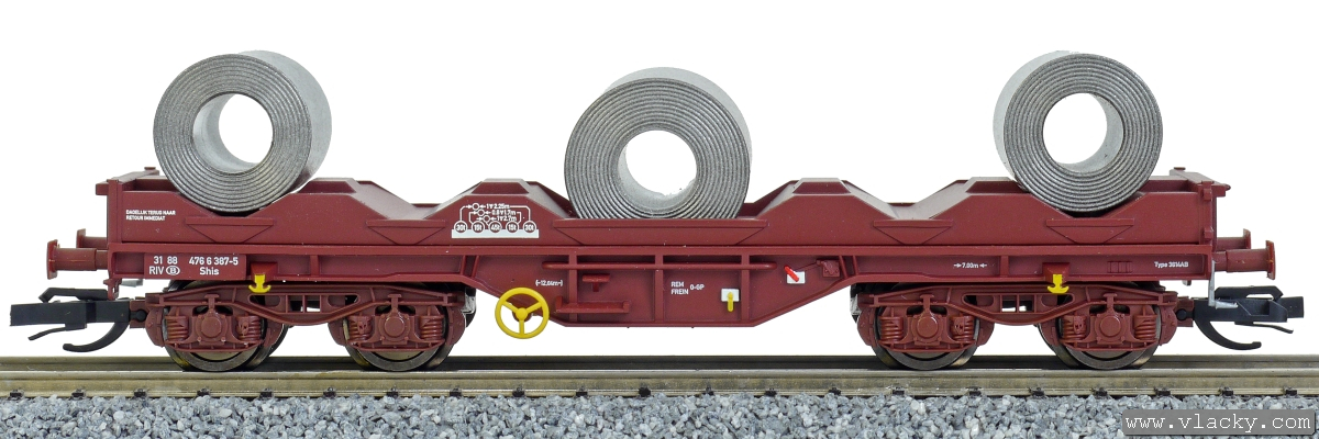| • 31 88 476 6 385-9 | → | nákladní, s podvozky, pevný rozchod, ve vlastnictví železniční správy, RIV, PPV |