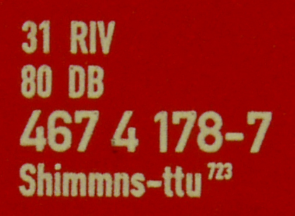 | • 31 80 467 4 178-7 | → | nákladní, s podvozky, pevný rozchod, ve vlastnictví železniční správy, RIV, PPV |