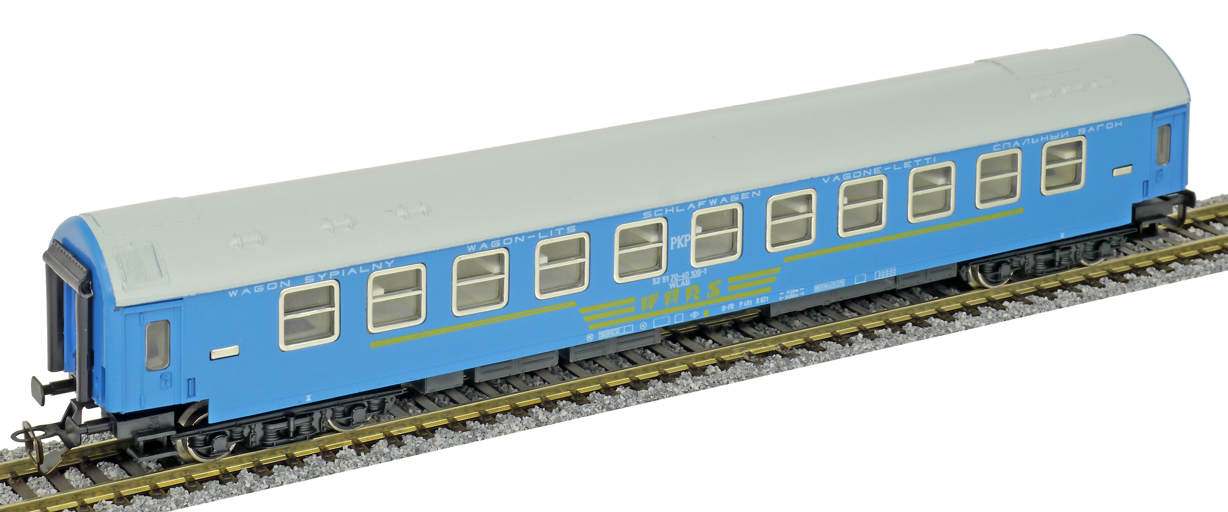 | lůžkový vůz modrý s šedou střechou „WARS“ |