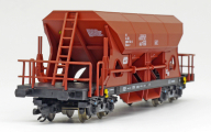 | nákladní samovýsypný vůz červenohnědý s černým rámem a s logem |