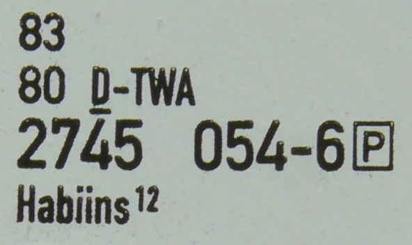 | • 83 80 2745 054-6 | → | kontrolní číslice |