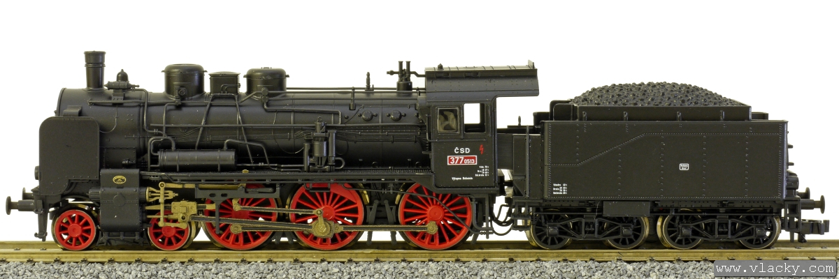 Popis   parní lokomotiva černá s kouřovými plechy