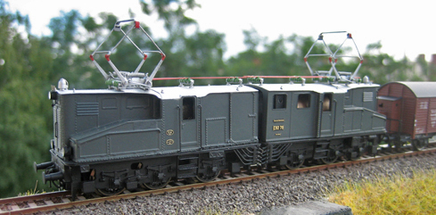 tmavěšedá s černým pojezdem dvoudílná nákladní lokomotiva