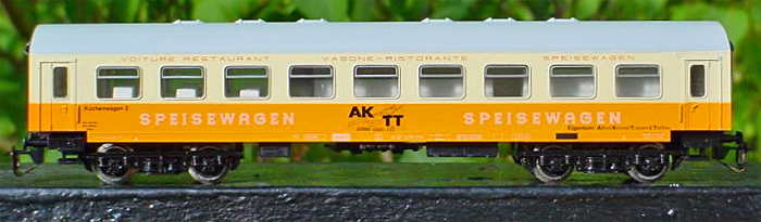 | oranžový-slonová kost s šedou střechou jídelní vůz "AKTT" |