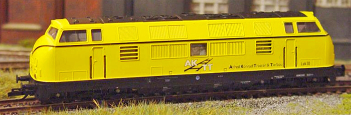 | dieselová lokomotiva žlutá-černá do pracovního vlaku „30 Jahre AKTT“ |