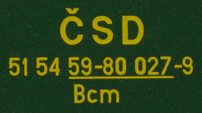 | • 51 54 59-80 027-9 | → | ČSD - Československé státní dráhy |