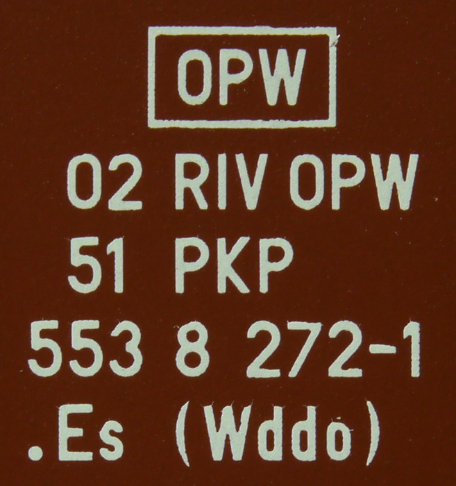 | • 02 51 553 8 272-1 | → | nákladní, nezávisle nápravy, měnitelný rozchod, ve vlastnictví železniční správy, RIV, IF |