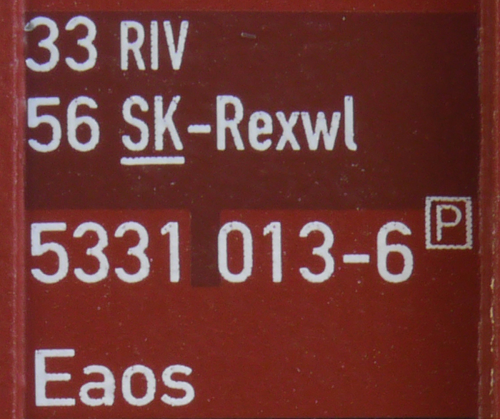 | • 33 56 5331 013-6 | → | nákladní, s podvozky, pevný rozchod, soukromý vůz, RIV, PPV |