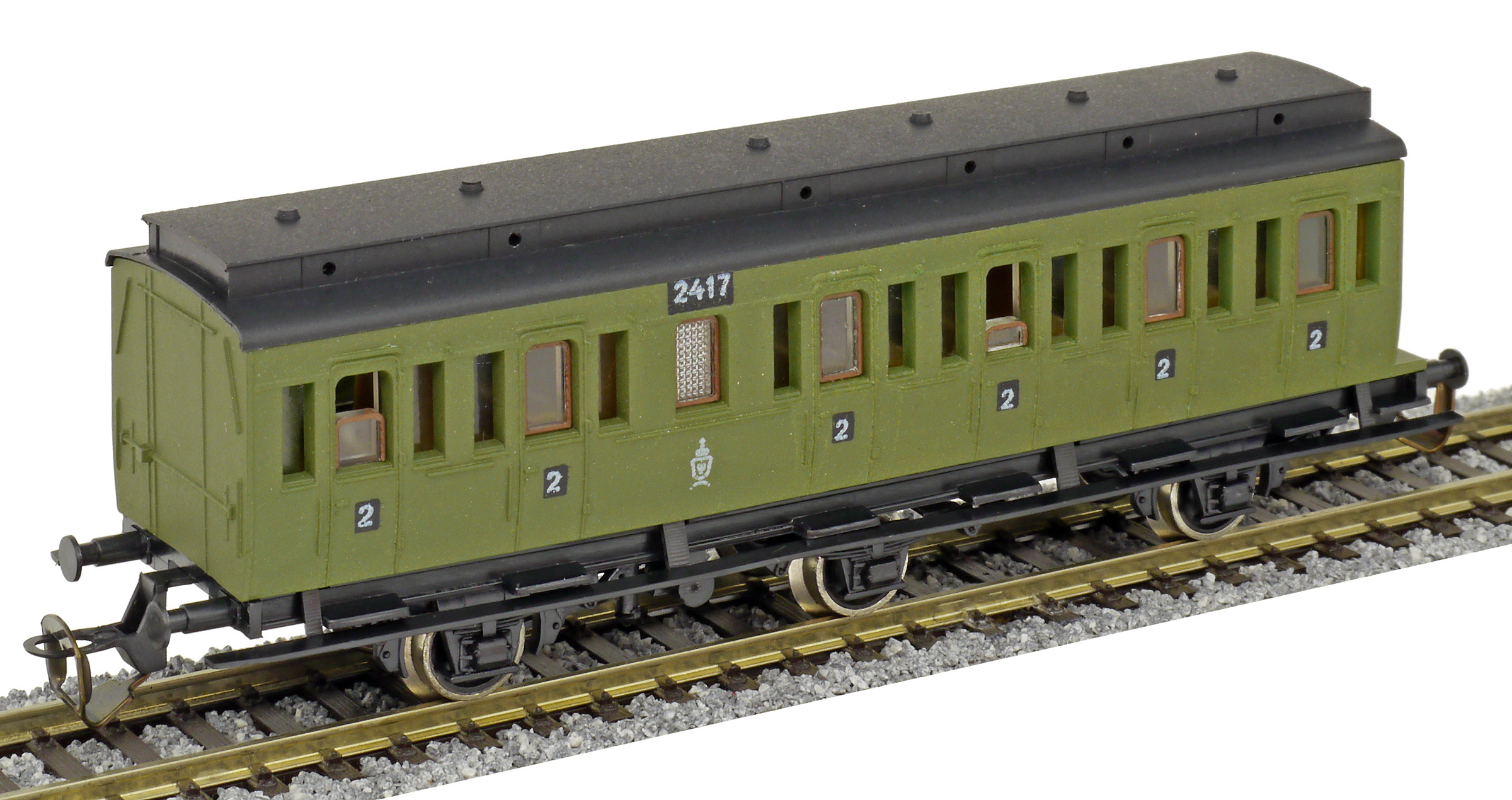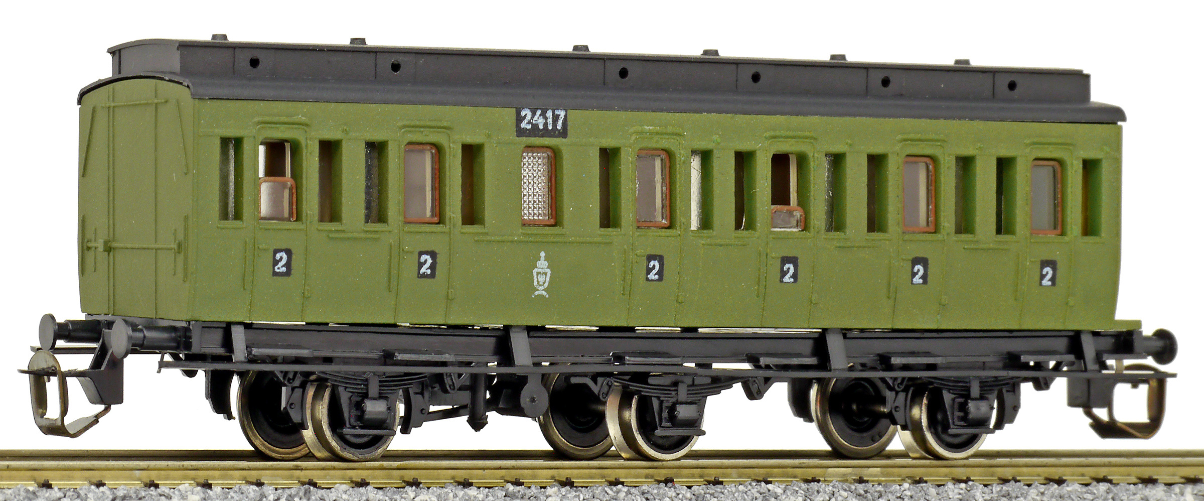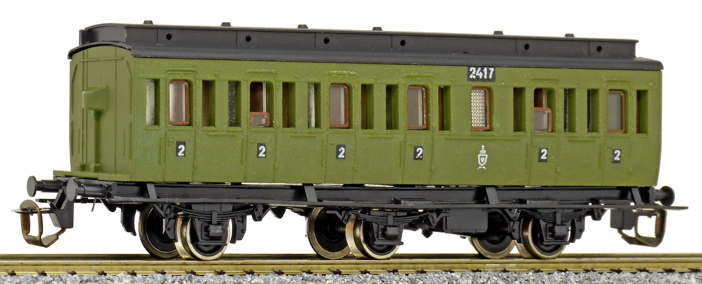 oddílový osobní vůz zelený s černou střechou 2. tř.