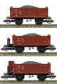 | otevřený nákladní vůz červenohnědý ložený uhlím |