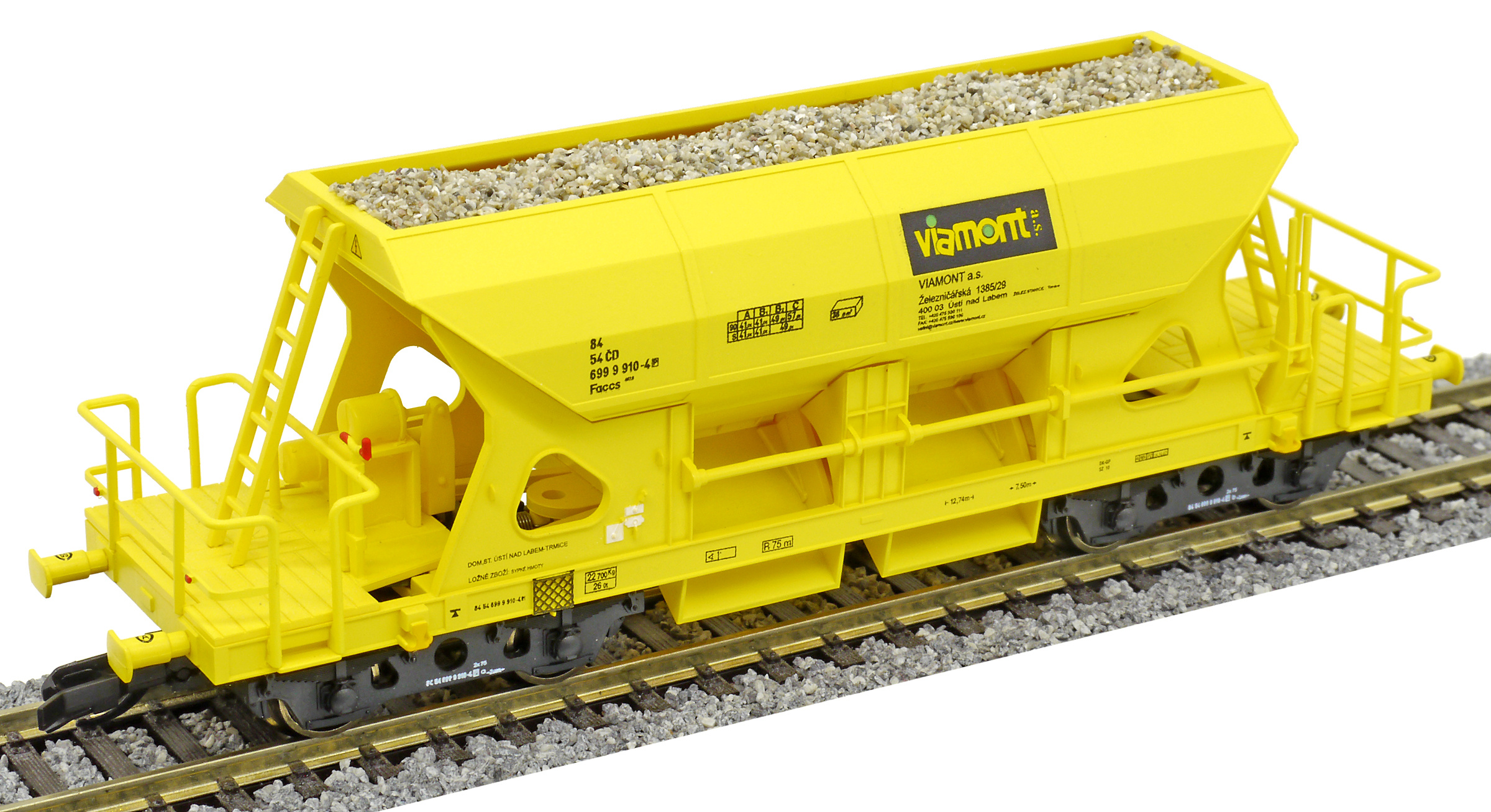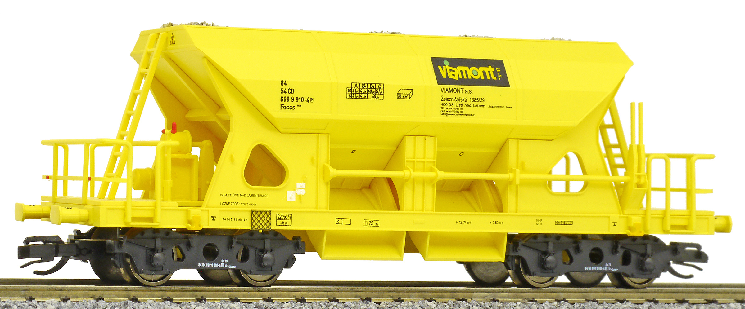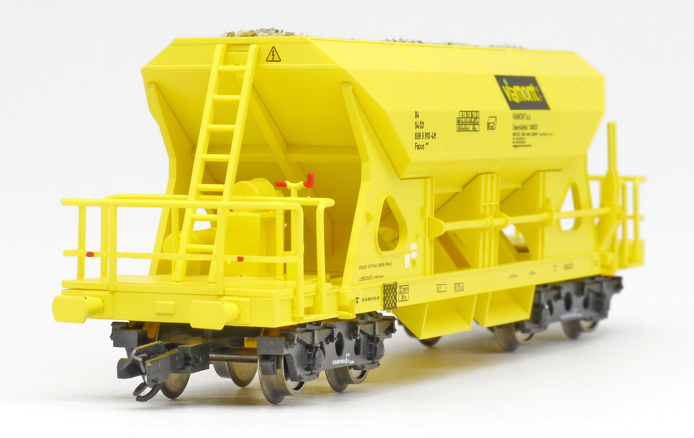 | nákladní samovýsypný vůz žlutý s nákladem štěrku „Viamont“ |