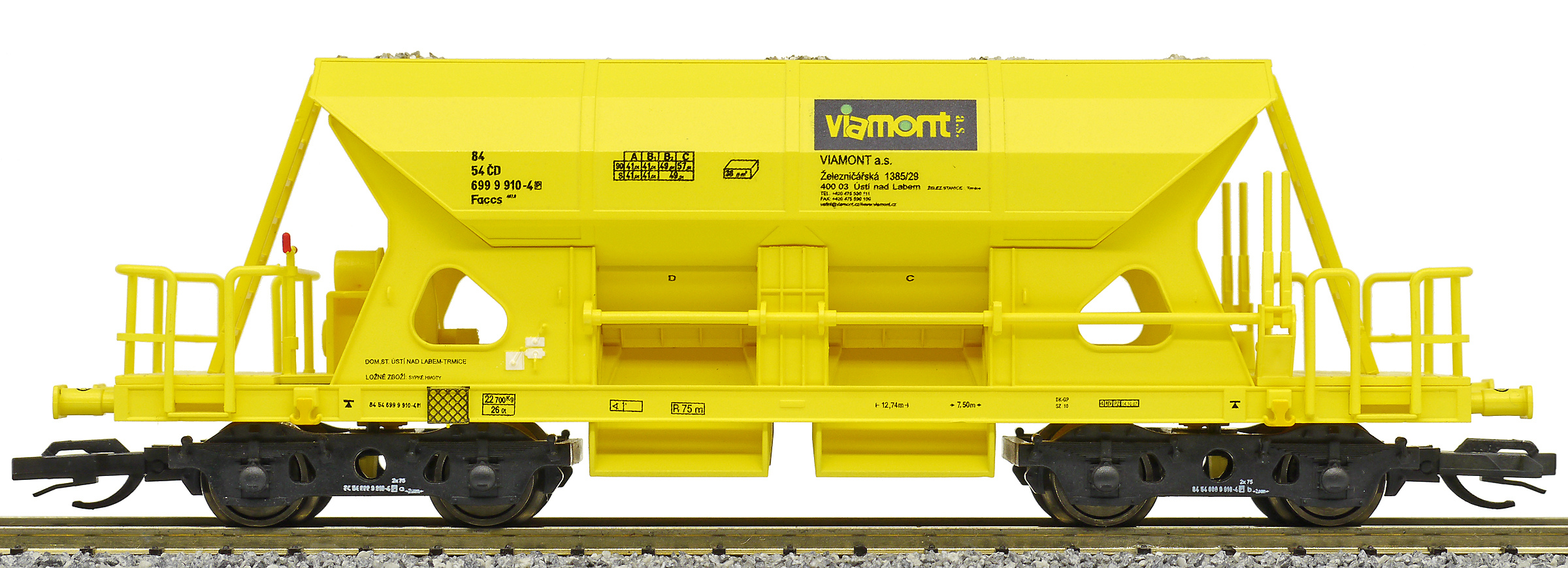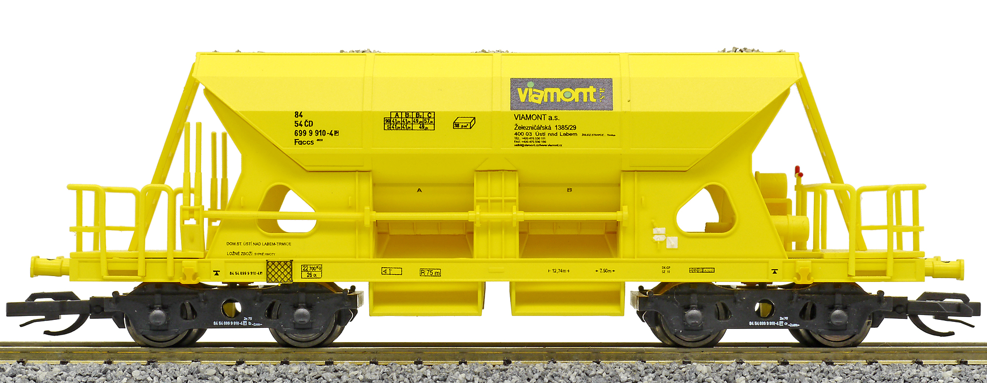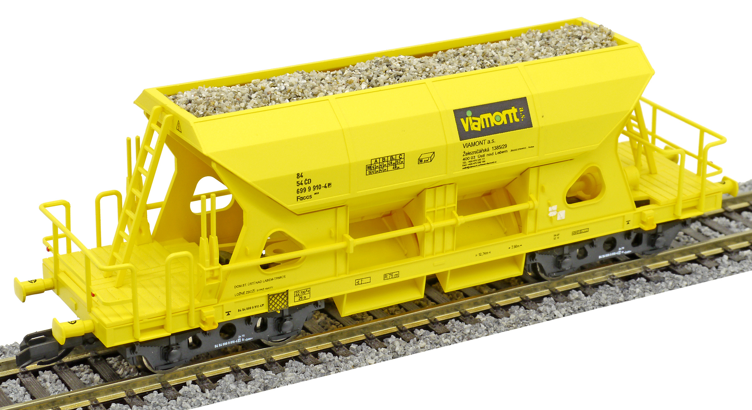 | nákladní samovýsypný vůz žlutý s nákladem štěrku „Viamont“ |