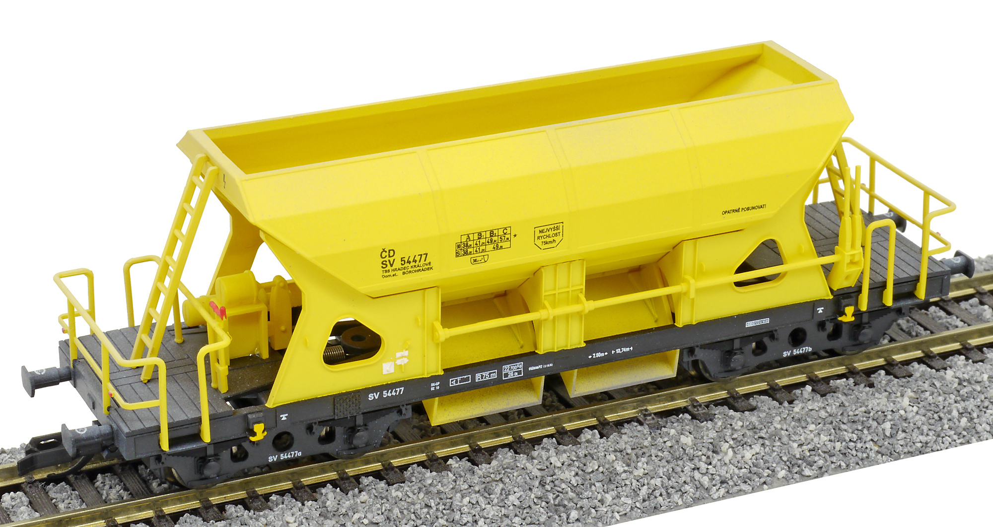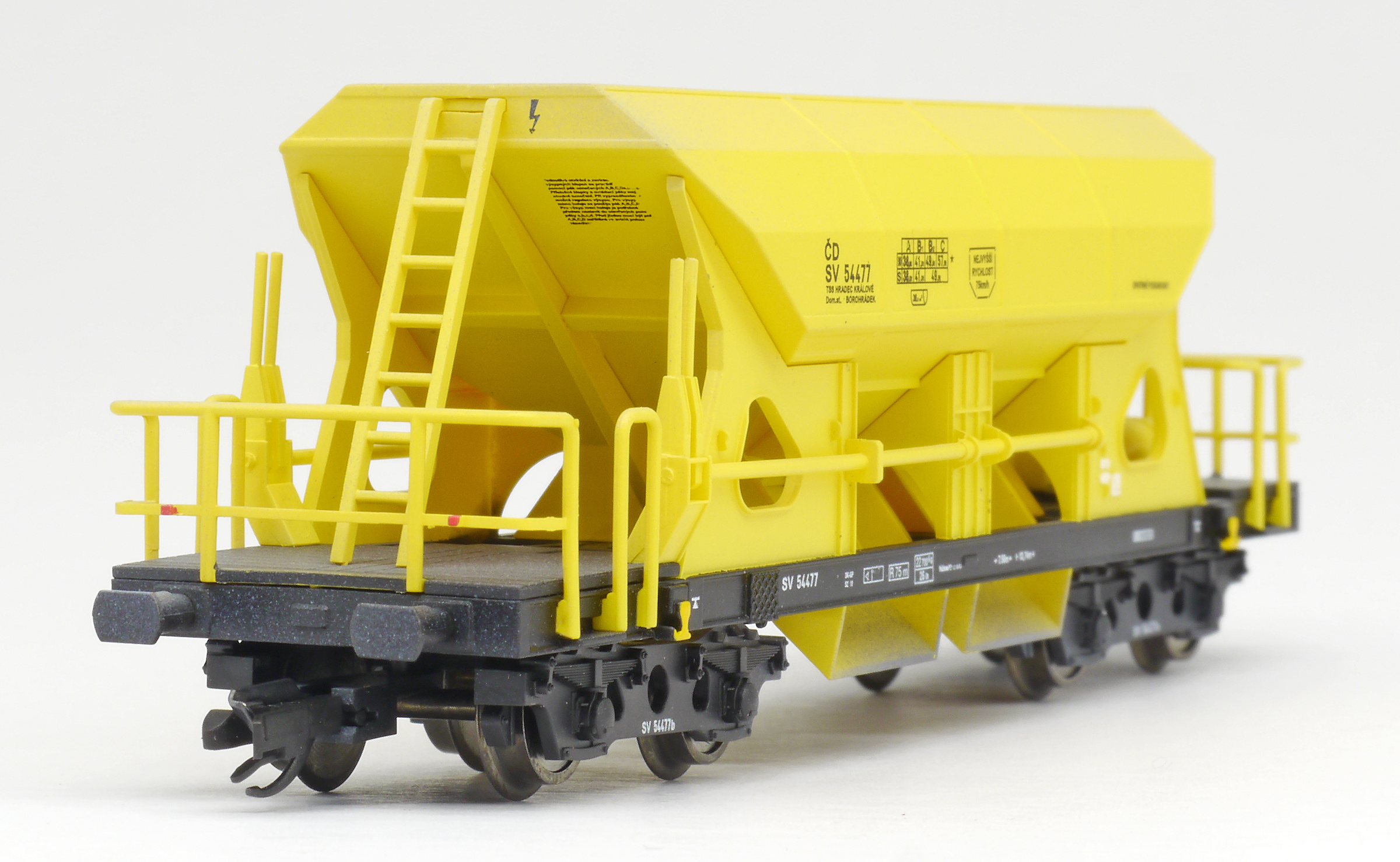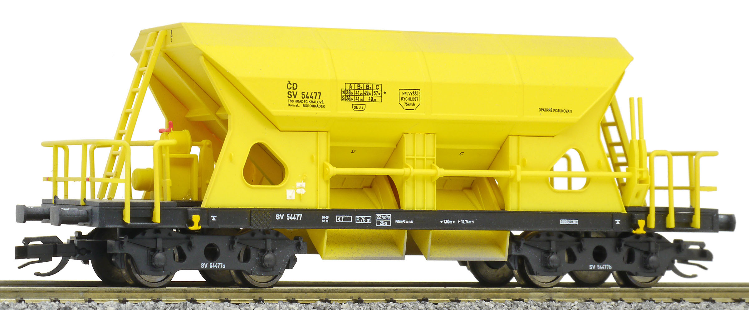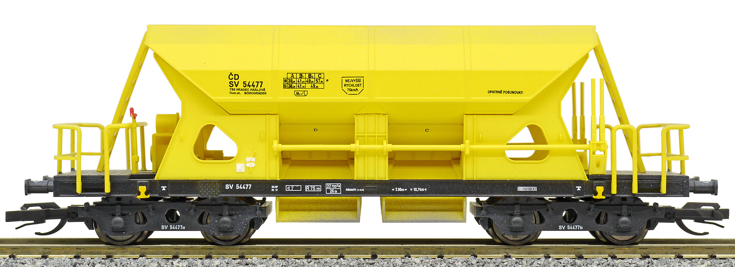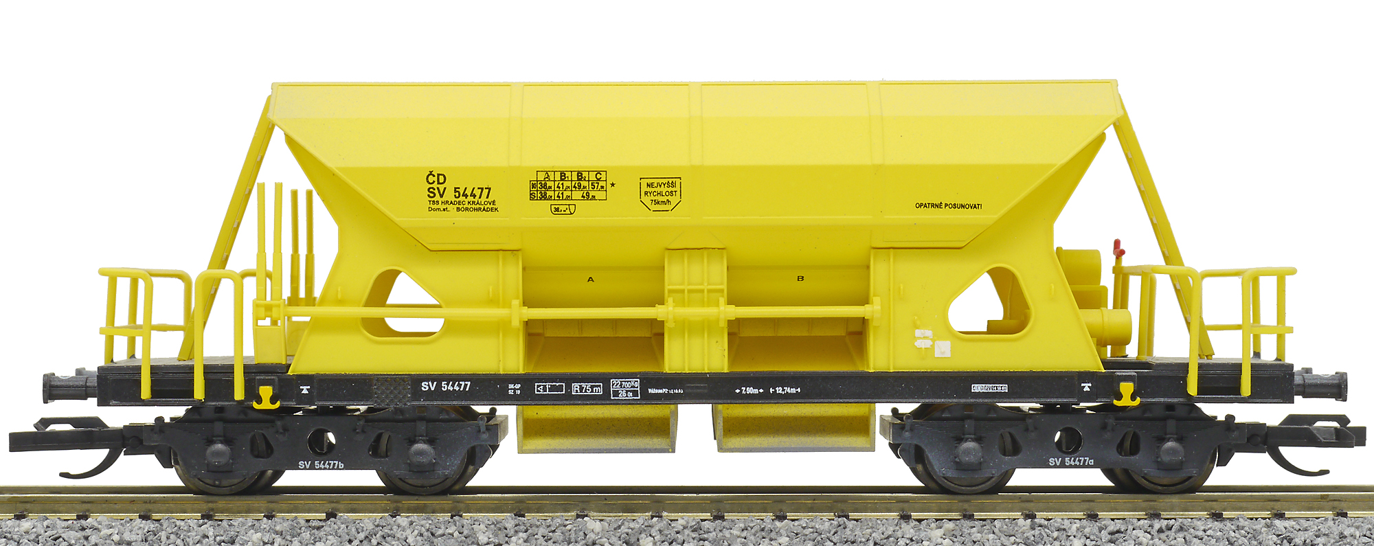 měřítko 1:120 - rozchod kolejí 12 mm kinematika krátkého spřáhla (KKK) podle normy NEM 358 108 mm - celková délka modelu přes nárazníky 7 - celkový počet náprav nebo rozložení náprav 55 g - hmotnost brutto - model včetně prodejního obalu 31 g - hmotnost netto - pouze model
