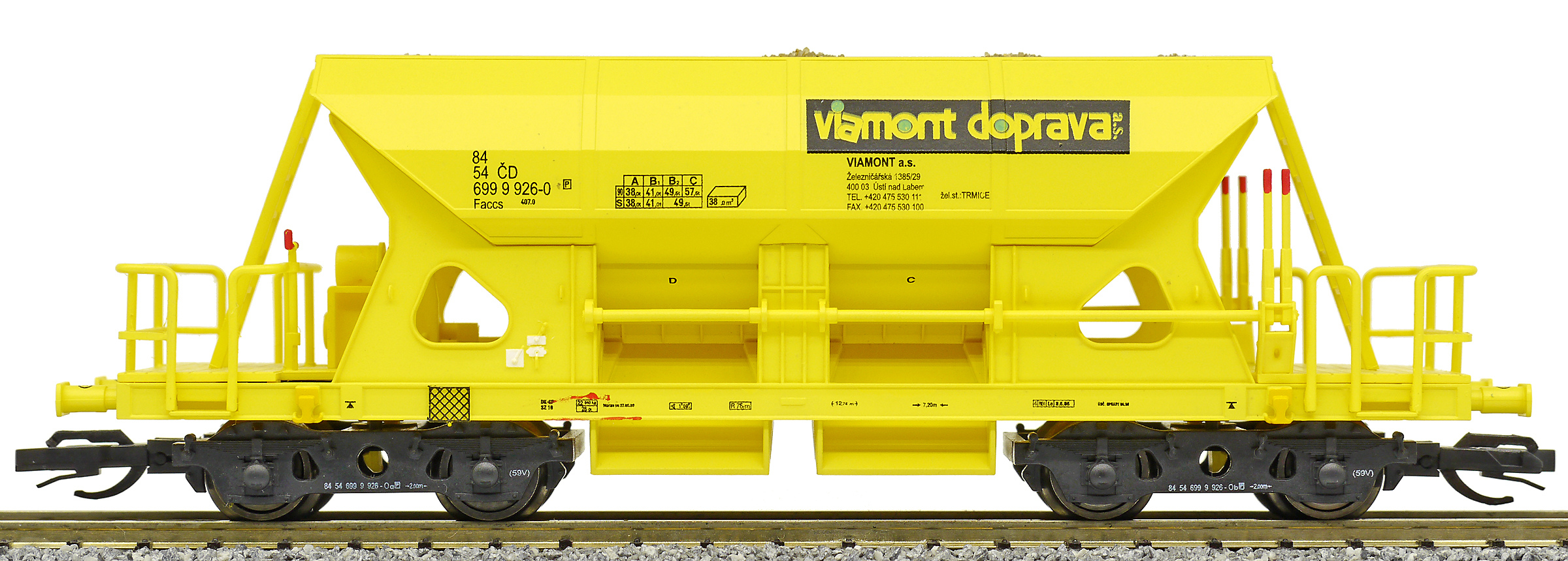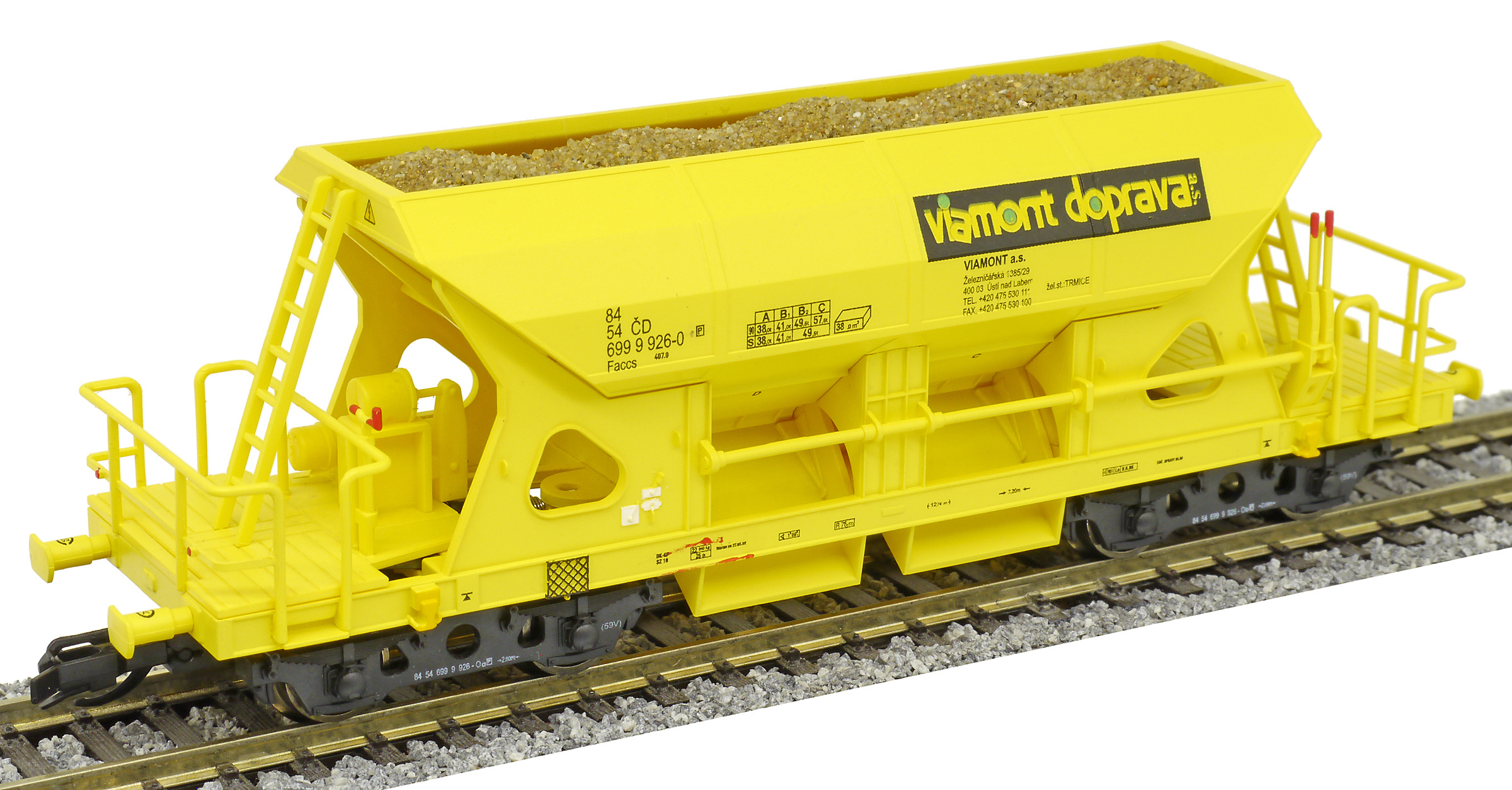 | nákladní samovýsypný vůz žlutý s nákladem štěrku „Viamont“ |