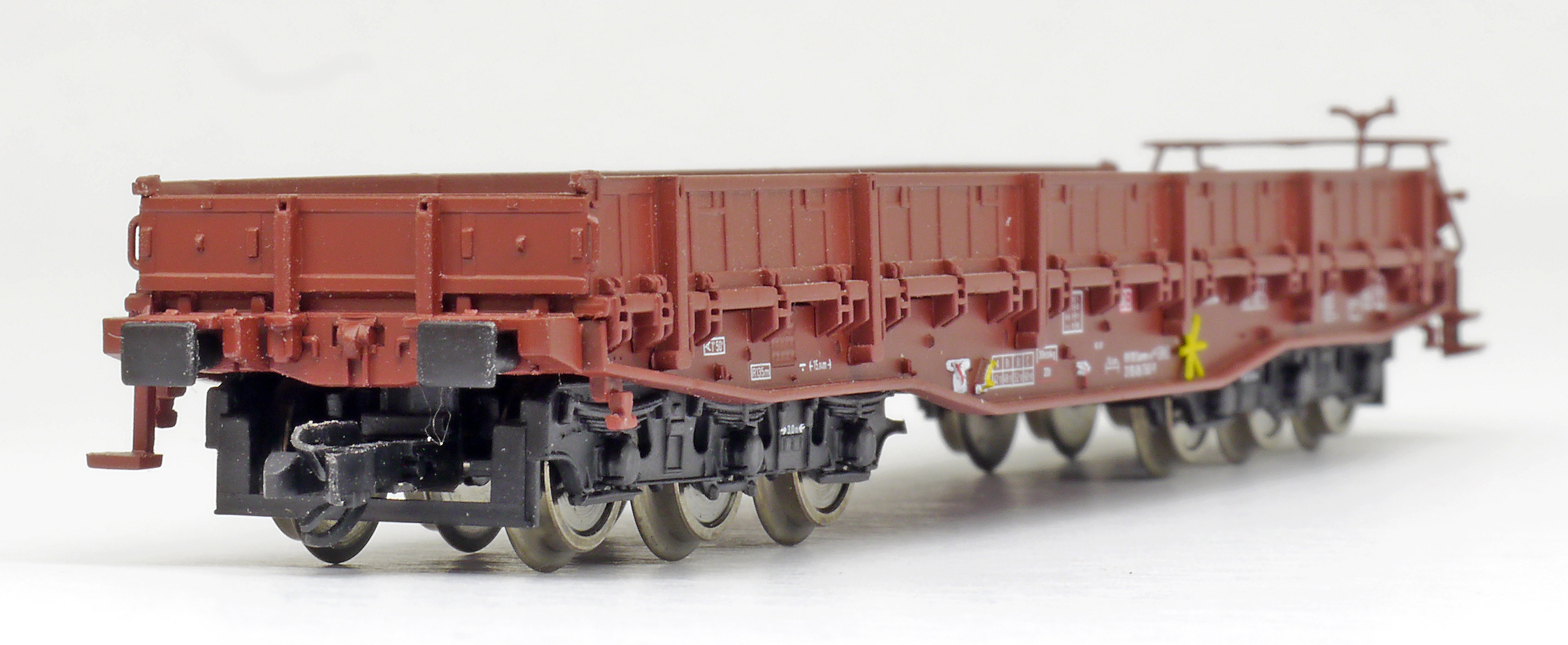 měřítko 1:120 - rozchod kolejí 12 mm kinematika krátkého spřáhla (KKK) podle normy NEM 358 minimálni projížděný poloměr 310 mm 132 mm - celková délka modelu přes nárazníky 6 - celkový počet náprav nebo rozložení náprav 68 g - hmotnost brutto - model včetně prodejního obalu 32 g - hmotnost netto - pouze model