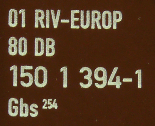 | • 01 80 150 1 394-1 | → | nákladní, nezávislé nápravy, pevný rozchod, ve vlastnictví železniční správy, RIV, EUROP/IF |
