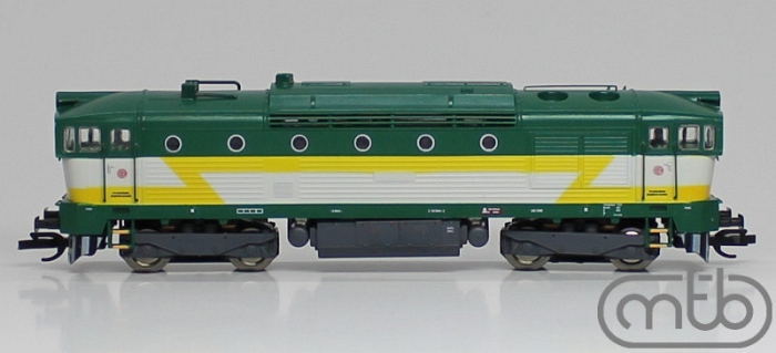 Popis   dieselová lokomotiva zelená-bílá se žlutými blesky