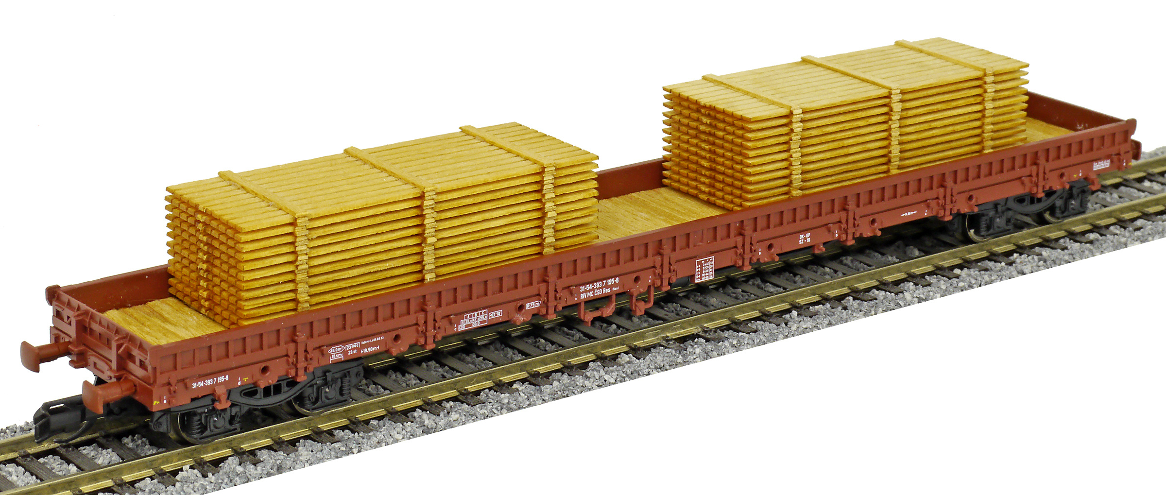 | • 31-54-393 7 195-8 | → | nákladní, s podvozky, pevný rozchod, ve vlastnictví železniční správy, RIV, PPV |