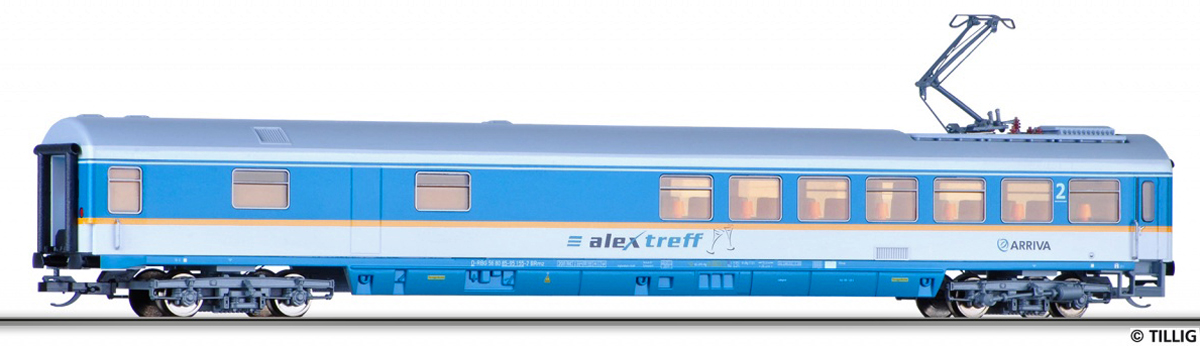 Popis   tyrkysový s šedou střechou jídelní vůz „Alex“