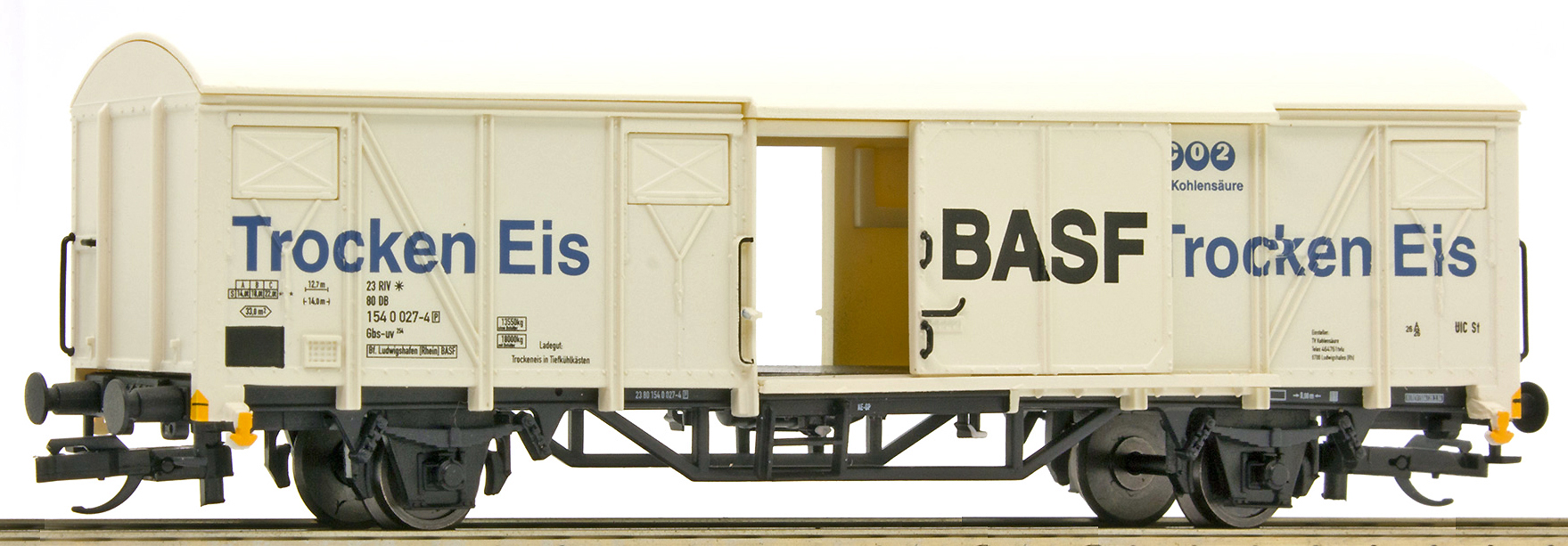 | krytý nákladní vůz bílý „BASF Trocken Eis“ |