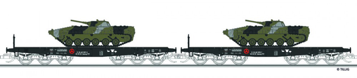 | set dvou plošinových vozů s patinovanými BMP-1 „Militärtransport“ |