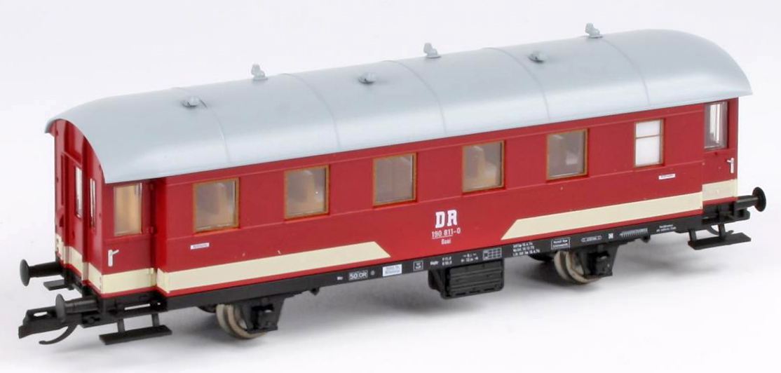 | osobní vůz červený s šedou střechou 2. tř. |