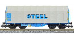 | plošinových vůz modrý s plachtou „STEEL“ |