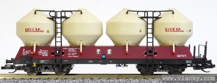 | nákladní samovýsypný vůz červenohnědý s krémovými nádobami „LORETA“ |