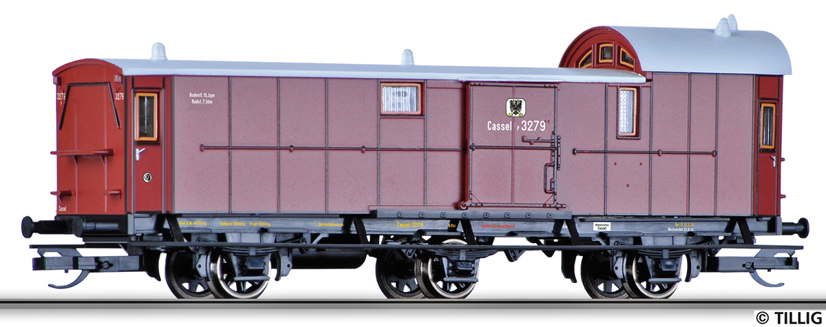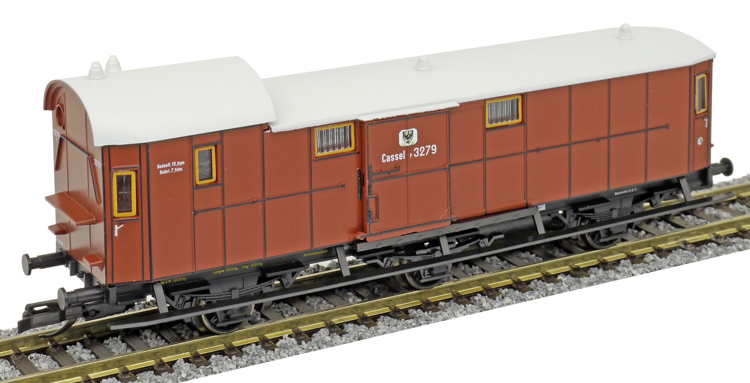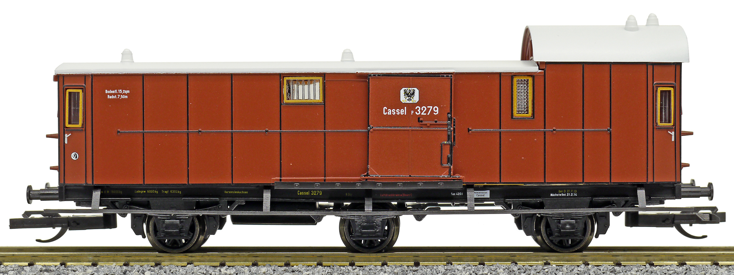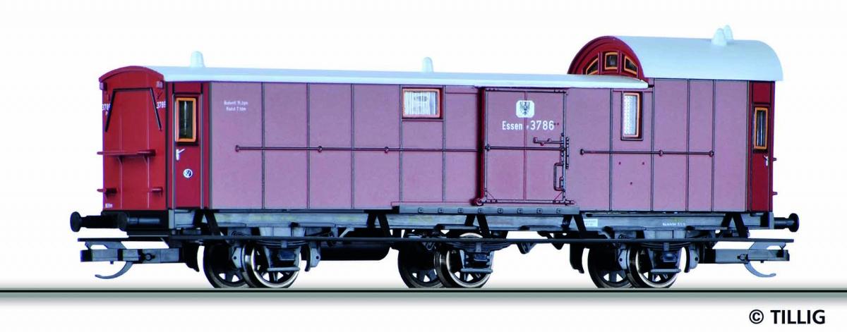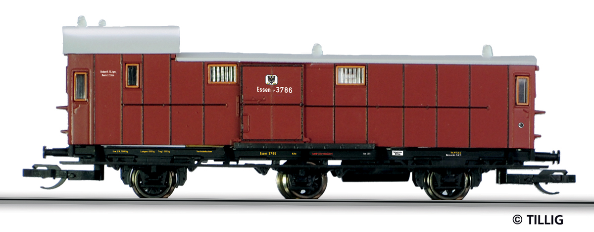 | zavazadlový vůz červenohnědý se světle šedou střechou |