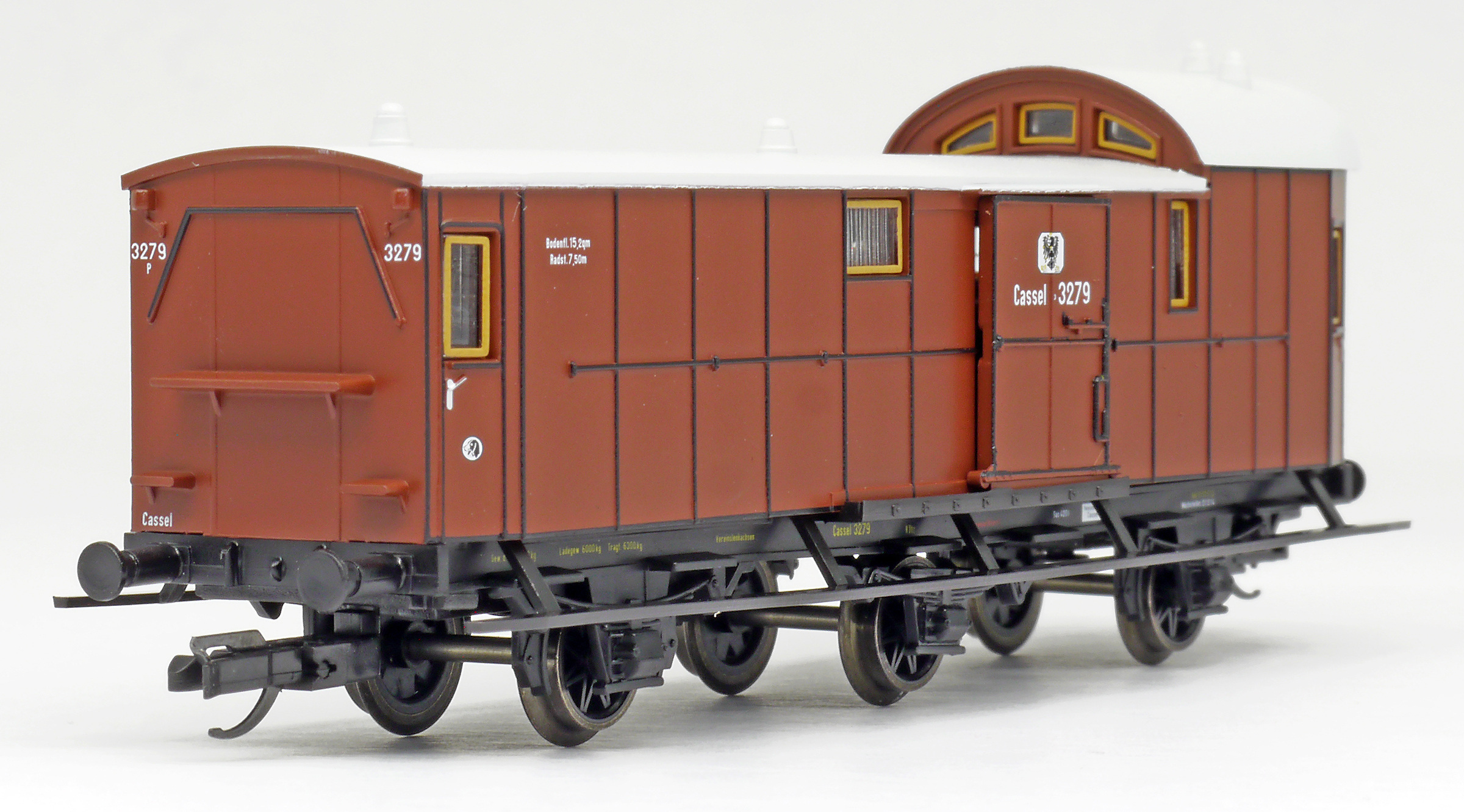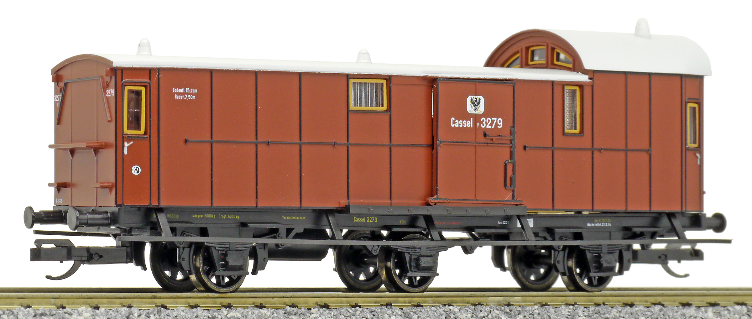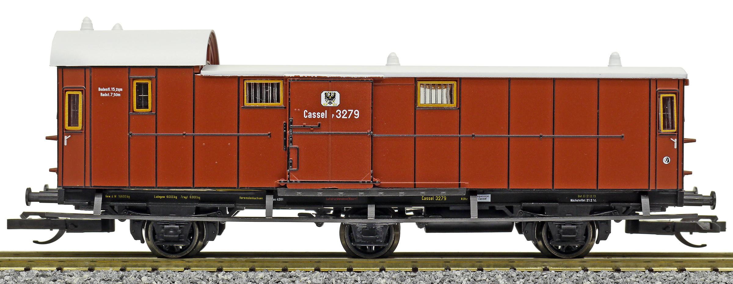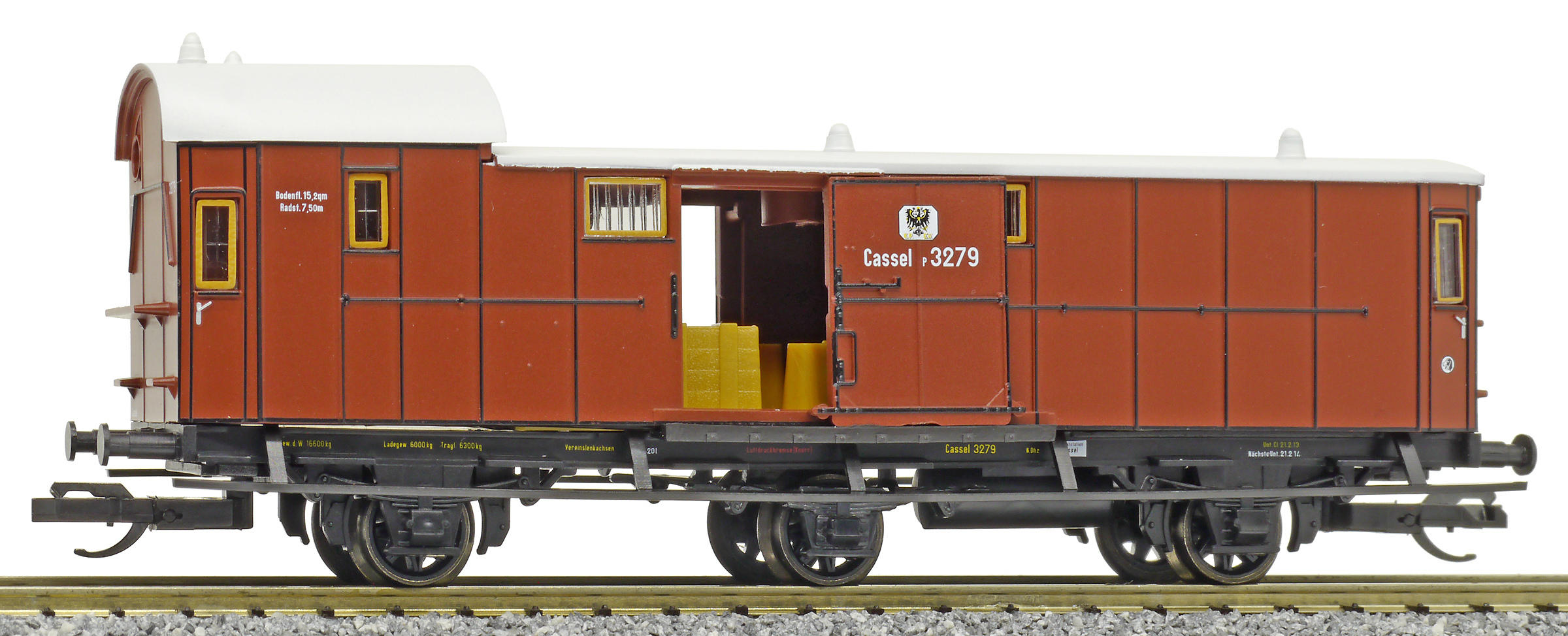 | zavazadlový vůz červenohnědý se světle šedou střechou |