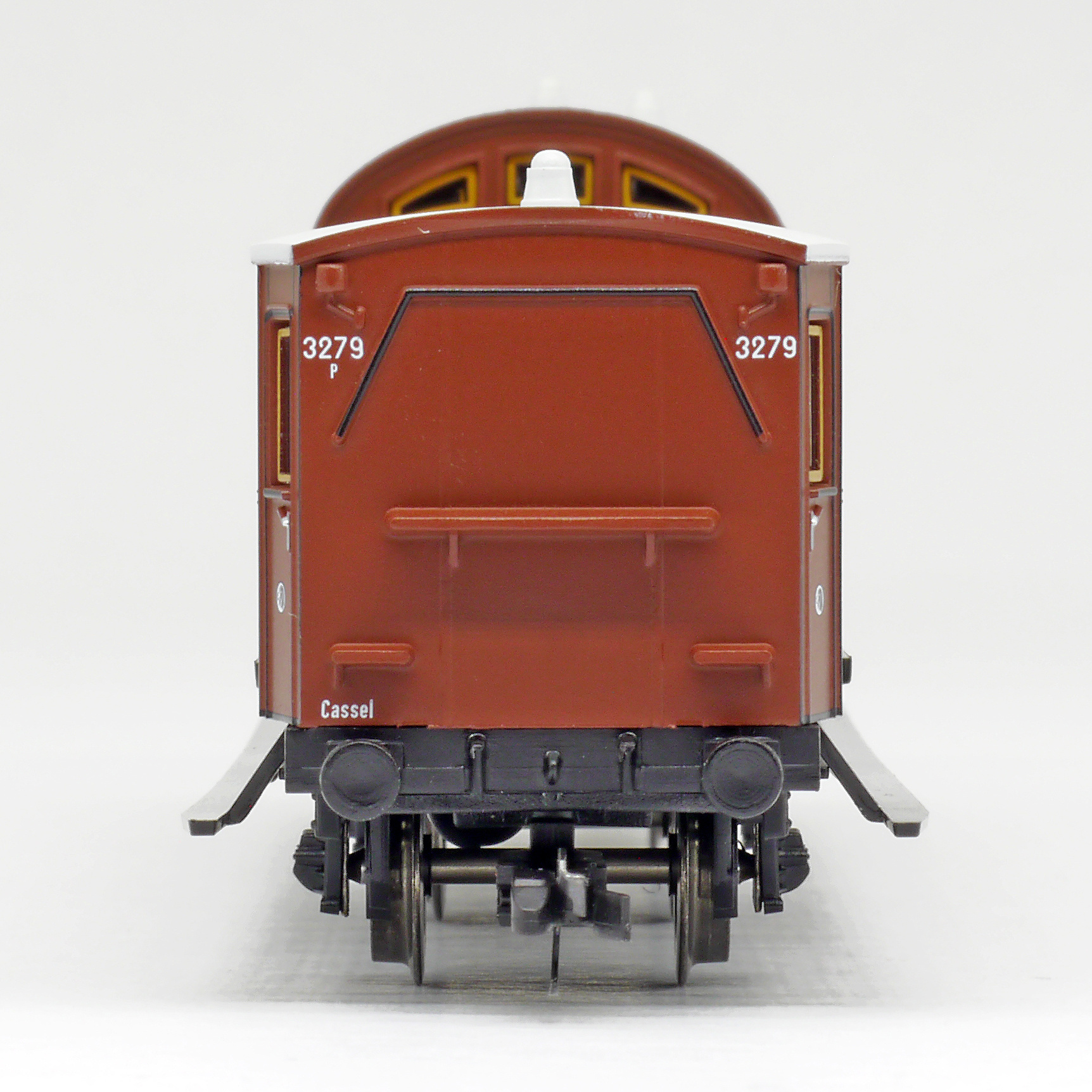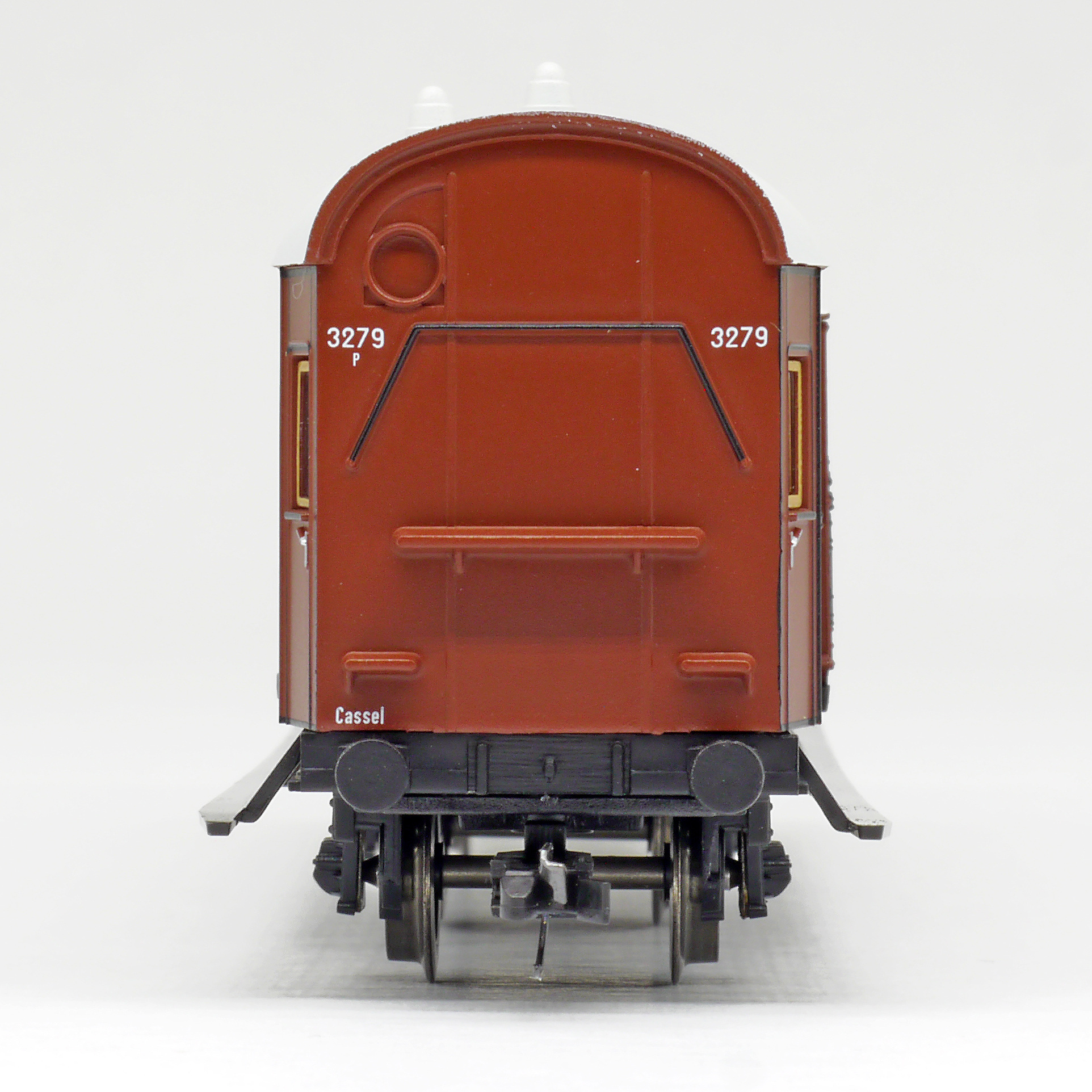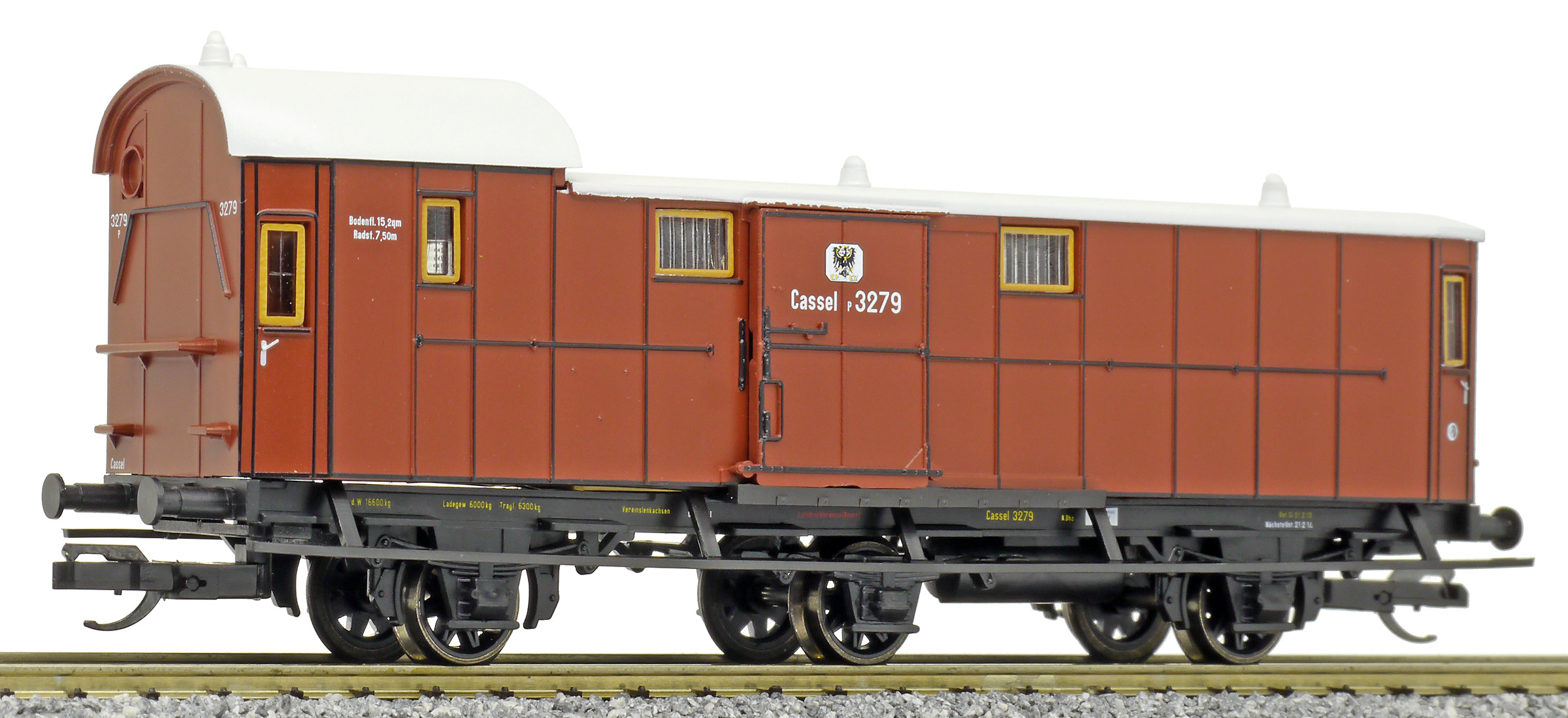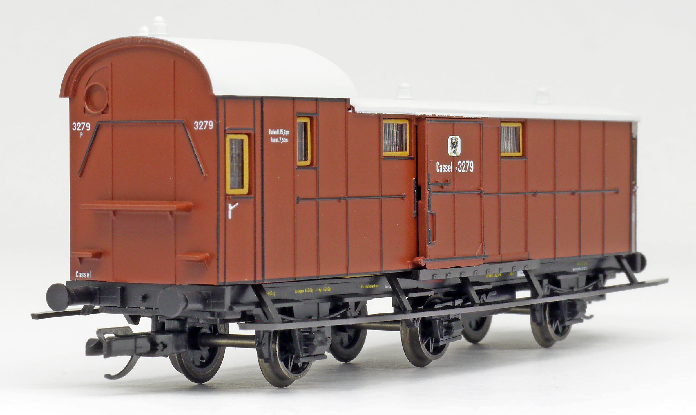 | zavazadlový vůz červenohnědý se světle šedou střechou |