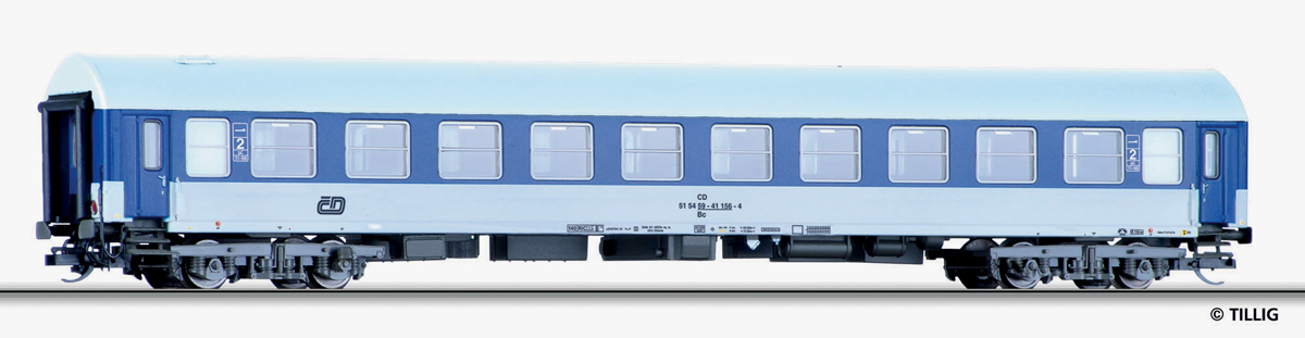| lehátkový vůz modrý-bílý s šedou střechou 2. tř. |