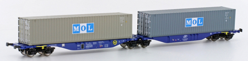 Popis   dvoudílný kontejnerový vůz modrý s nákladem dvou kontejnerů 40' „MOL”