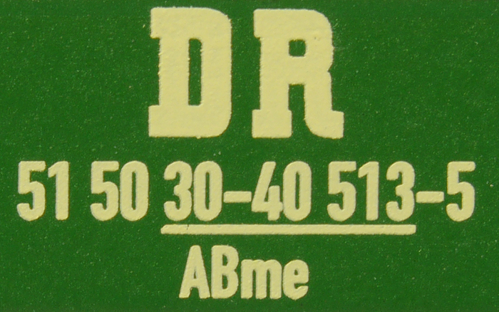 | • 51 50 30-40 513-5 | → | DR - Deutsche Reichsbahn |