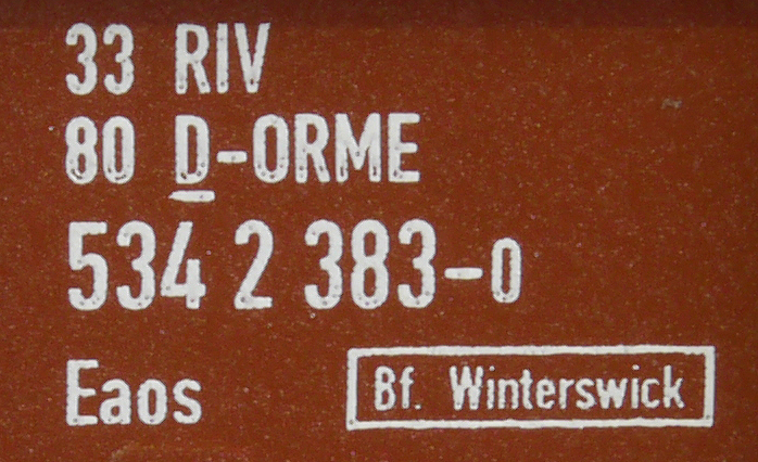| • 33 80 534 2 383-0 | → | nákladní, s podvozky, pevný rozchod, soukromý vůz, RIV, PPV |
