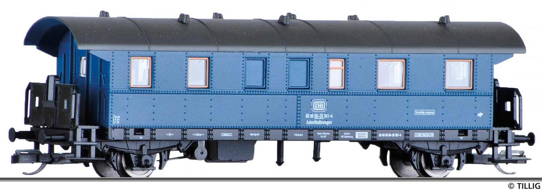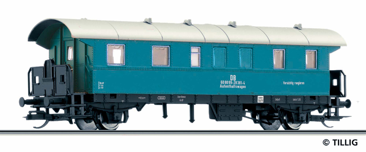 | osobní vůz tyrkysový s šedou střechou obytný vůz do pracovního vlaku |