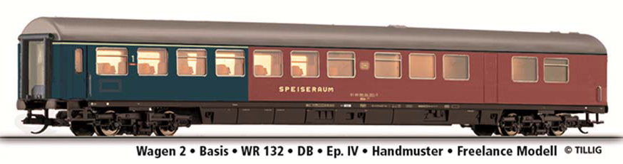 | červený-modrý, šedá střecha, jídelní vůz „Kakadu“ |