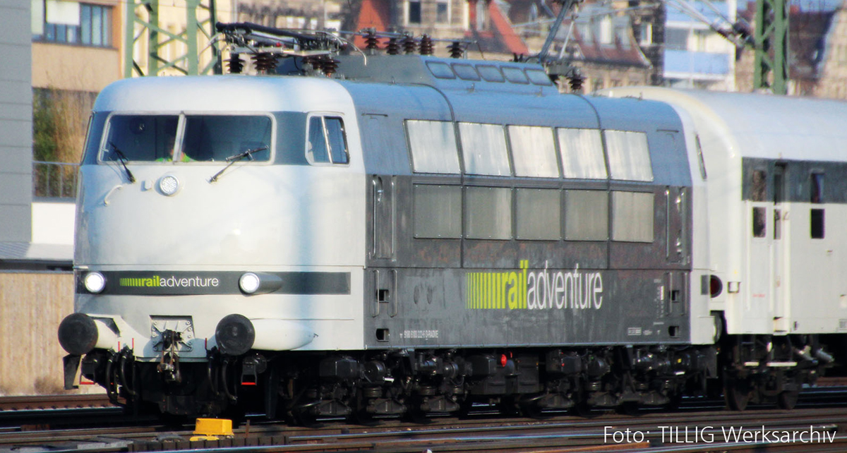 | elektrická lokomotiva bílá-šedá „railadventure“ |