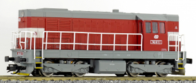Popis   dieselová lokomotiva červená s šedou střechou, rámem a pojezdem a výstražným pruhem