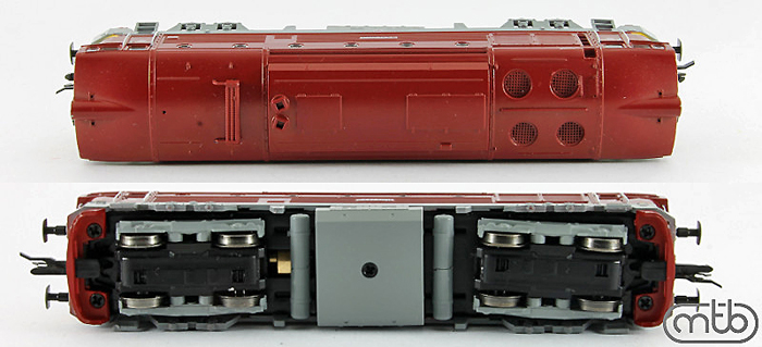 měřítko 1:120 - rozchod kolejí 12 mm osvětlení - 3 reflektory vpředu, 2 světla vzadu, přepínatelné podle směru jízdy 4 hnané nápravy 1 bandážovaná náprava kinematika krátkého spřáhla (KKK) podle normy NEM 358 digitální rozhraní podle NEM 658 s konektorem PluX16 setrvačník 137 mm - celková délka modelu přes nárazníky 4 - celkový počet náprav nebo rozložení náprav