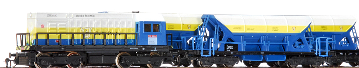 | set dieselové lokomotivy řady 720 a tří samovýsypných vozů |