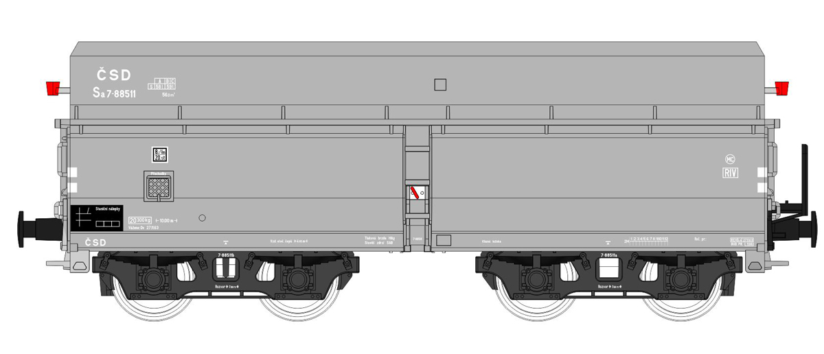 měřítko 1:120 - rozchod kolejí 12 mm kinematika krátkého spřáhla (KKK) podle normy NEM 358 83 mm - celková délka modelu přes nárazníky 4 - celkový počet náprav nebo rozložení náprav