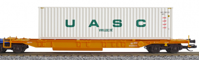 | dvoudílný kontejnerový vůz modrý-oranžový „Kombiwaggon“ se dvěma kontejnery 40' |