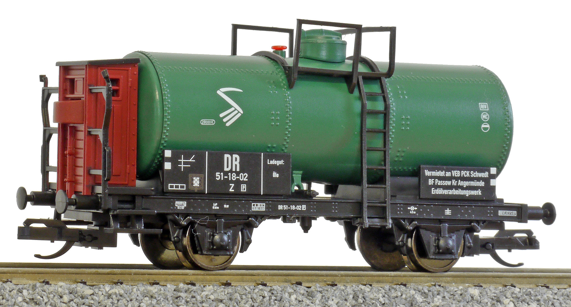 | kotlový vůz zelený s brzdařskou budkou „Schwedt“ |