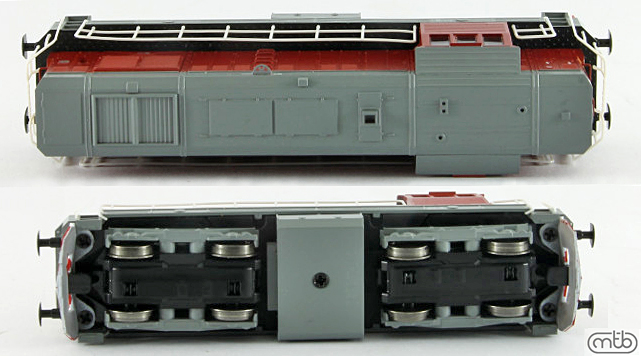 měřítko 1:120 - rozchod kolejí 12 mm osvětlení - 3 reflektory vpředu, 2 světla vzadu, přepínatelné podle směru jízdy 4 hnané nápravy 0 bandážovaných náprav kinematika krátkého spřáhla (KKK) podle normy NEM 358 digitální rozhraní podle NEM 662 s konektorem Next18 setrvačník 112 mm - celková délka modelu přes nárazníky 4 - celkový počet náprav nebo rozložení náprav
