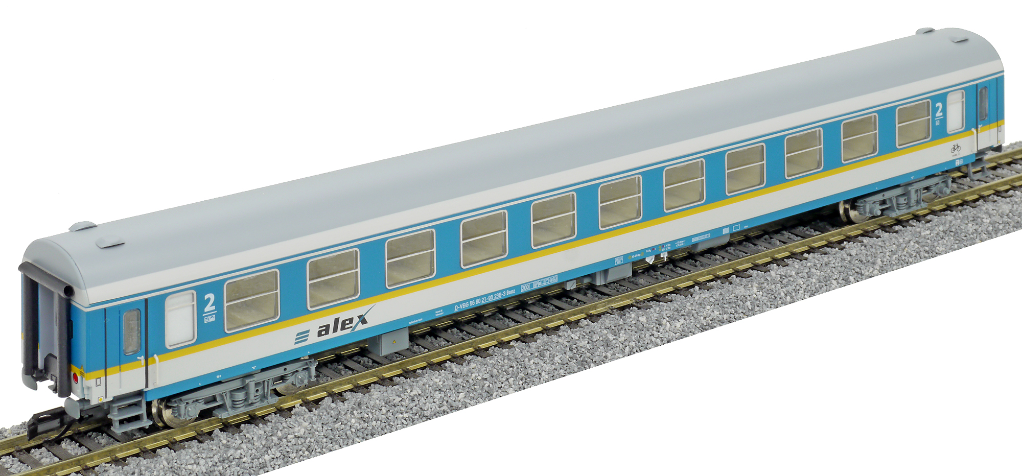 | rychlíkový vůz tyrkysový-bílý s šedou střechou 2. tř. |