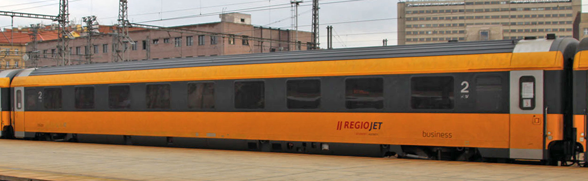 | rychlíkový vůz v barvách „RegioJet“ 2. tř. |