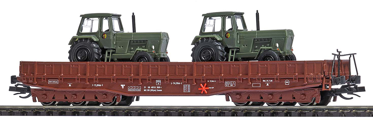 | nízkostěnný vůz s nákladem dvou vojenských traktorů ZT 300 „NVA“ |