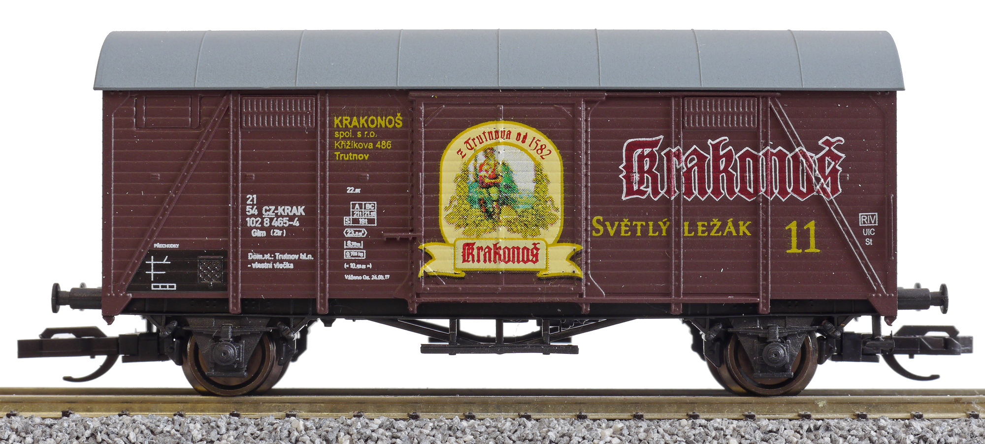 | krytý nákladní vůz tmavě hnědý s šedou střechou „Krakonoš“ |
