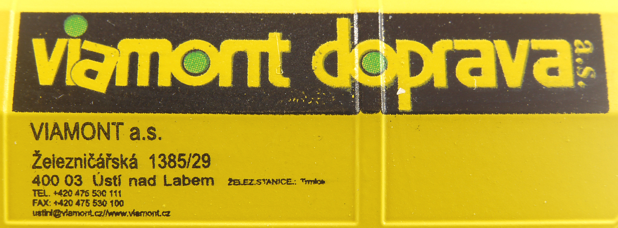 | nákladní samovýsypný vůz žlutý s logem „Viamont doprava a.s.“ |